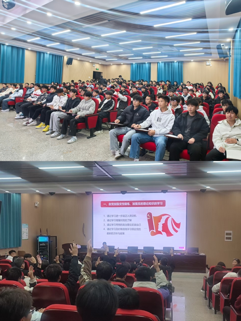 第六党支部纪检委员、莲塘校区教务科科长刘莹同志以生动的语言、丰富的案例,并结合相关视频向同学们深入浅出地讲解了入党的基本条件和程序,以及入党后的责任与使命。她强调,加入中国共产党不仅是对个人信仰的追求,更是对国家和民族的责任担当。要坚定信念,矢志不渝地听党话、跟党走,积极在全面深化改革与推进中国式现代化的伟大征程中发挥青春力量。