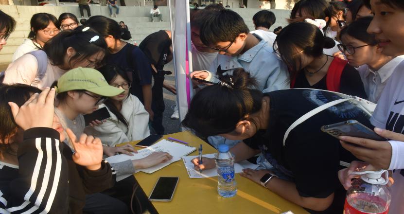 活动现场,同学们积极参与,展现出浓厚的兴趣。他们不仅认真聆听社团负责人的宣讲,还主动与社团成员互动交流,共同探讨着未来的发展方向和可能性。整个招新现场充满了青春的活力,气氛热烈而秩序井然。