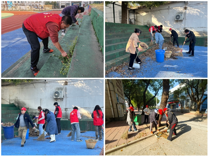 活动开始,师生们分工协作,对校园主干道、教学楼周边、学校足球场、篮球场、各部室办公区、绿化带等区域进行了全面清洁。党员教师们身穿红马甲,手执垃圾钳、扫把等工具,对地面的烟头、纸屑、塑料瓶等废弃物进行“地毯式”清理,学生在党员教师的带领下干劲十足,大家带着笤帚、簸箕、垃圾袋,在春光中捡拾白色垃圾、烟头、清理小广告,经过数个小时的努力,校园环境焕然一新。青年学子以实际行动践行志愿服务精神,进一步推动了校园文明建设。