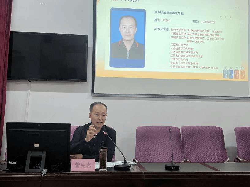 5月28日下午,我校在宜春校区会议室举办优秀毕业生返校 “话就业”活动。活动特邀89届优秀校友江西上高七宝酒业总经理、总工程师曾宪忠重返母校,与在校毕业生共话成长历程与职场心得。
