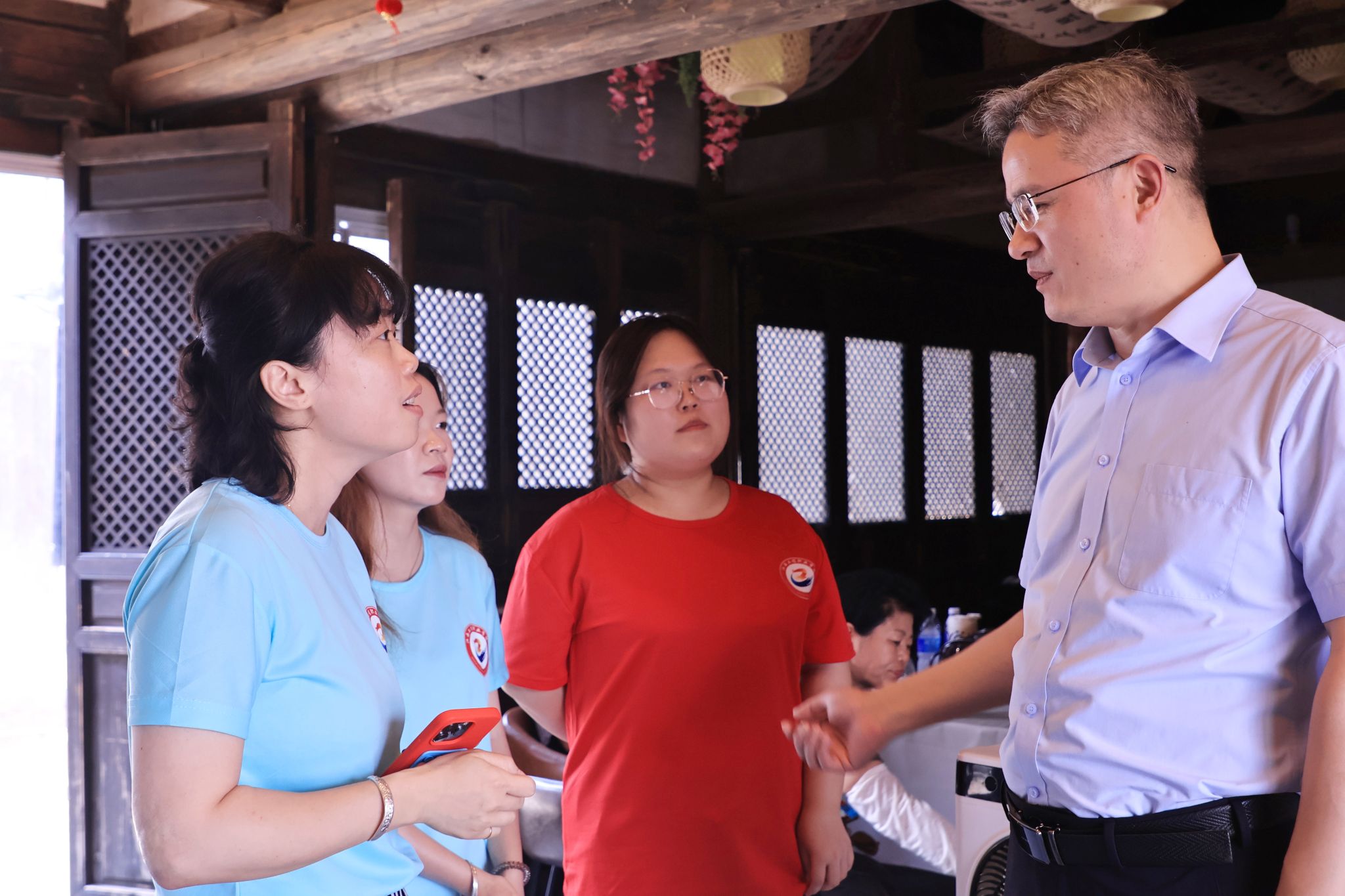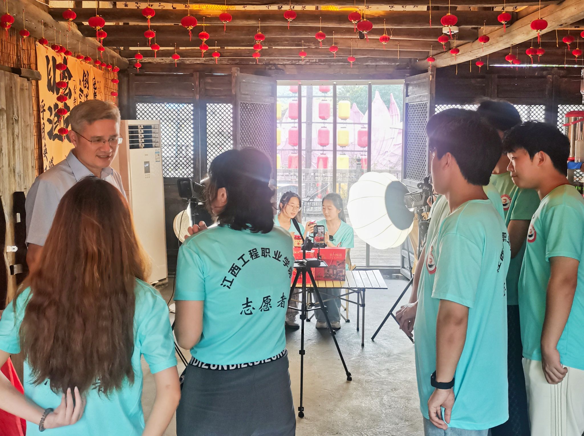 随后,花严红一行深入抚州市牛田镇流坑村实践基地,认真听取了“三下乡”社会实践团队活动开展情况介绍,与实践队员进行了亲切交流,现场观摩了正在进行的直播助农活动及古村落VR拍摄制作活动,高度认可了各实践队的中期成果。他强调,要在确保安全的前提下,扎实开展各项社会实践活动,不断深化对国情、社情、民情的了解,将所学知识与乡村实际相结合,真正在社会课堂中受教育、长才干、作贡献。
